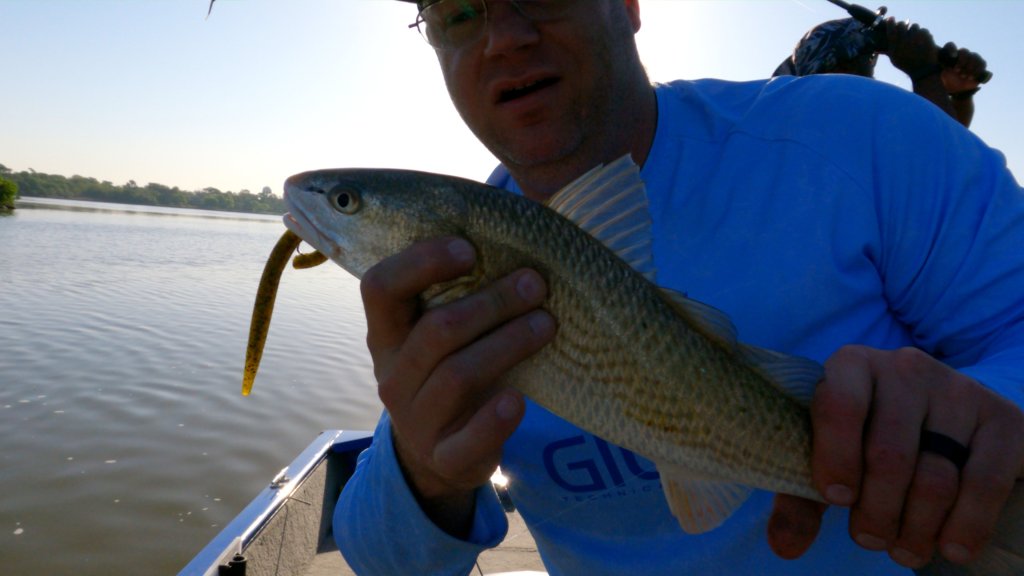 We met at Clear Lake Park Boat Ramp near NASA. It was a beautiful morning, and we were ready to enjoy it. I started out fishing the bass bait, the Watermelon/Red Fleck Senko, with a Spike-It dipped tail. I was surprised with the response!